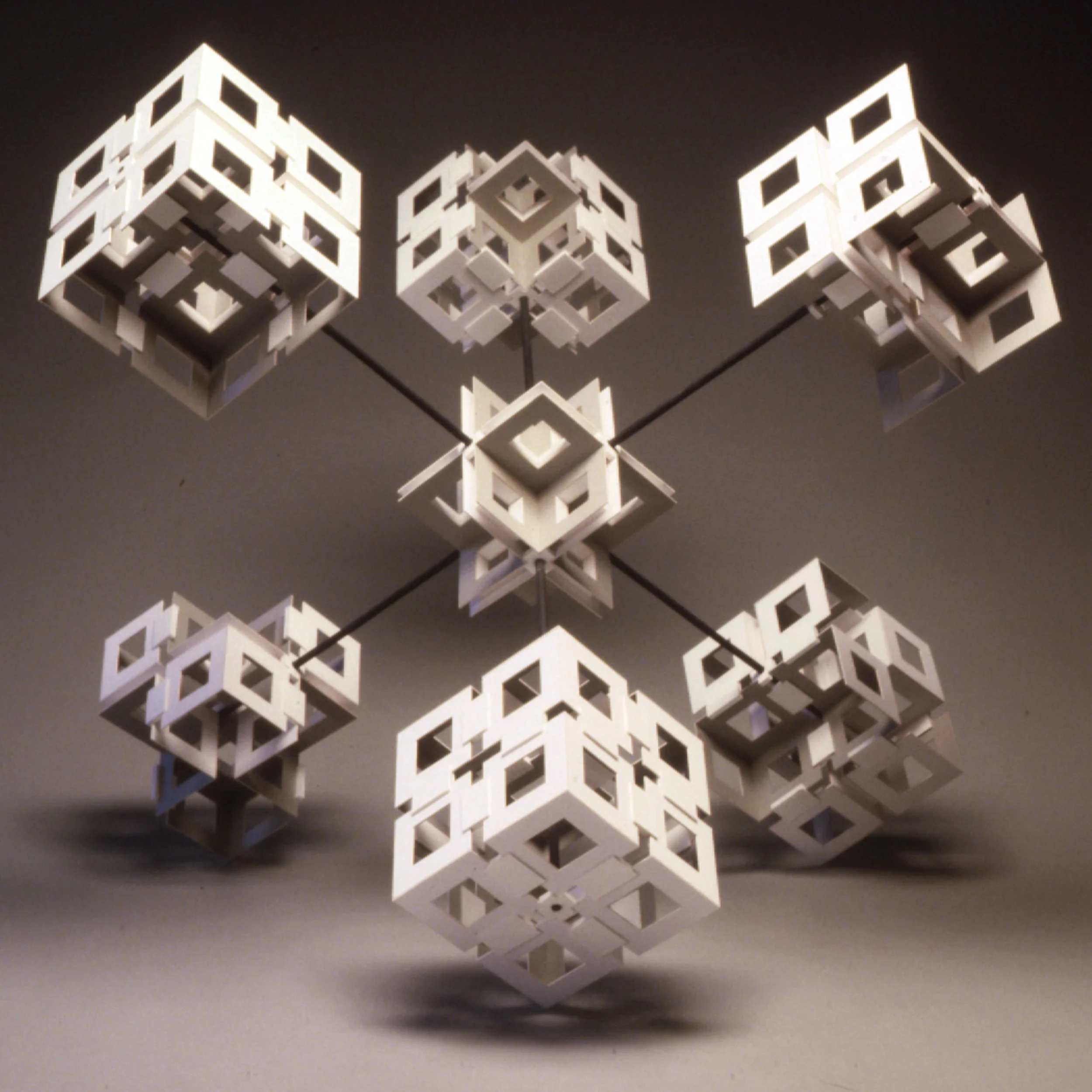Three-dimensional study of De Stijl style. Chipboard and acrylic paint.