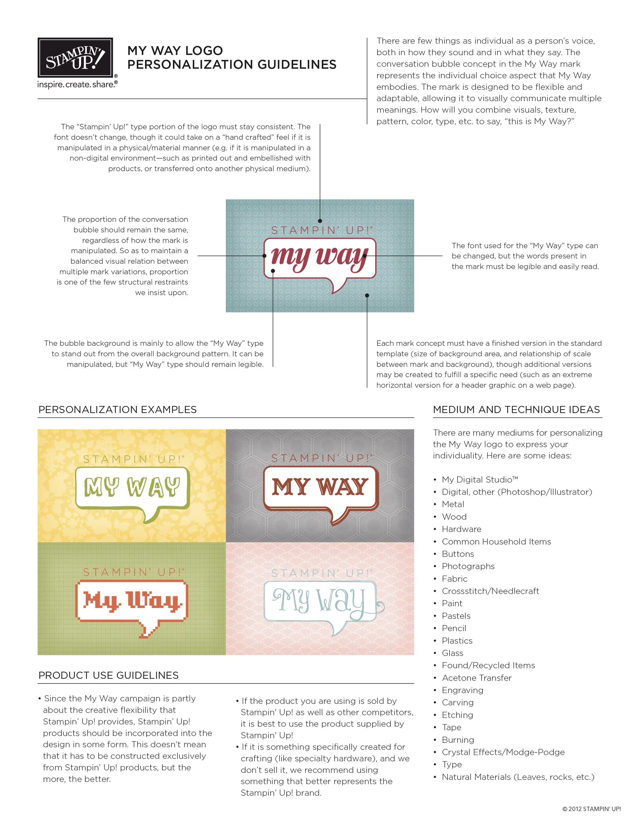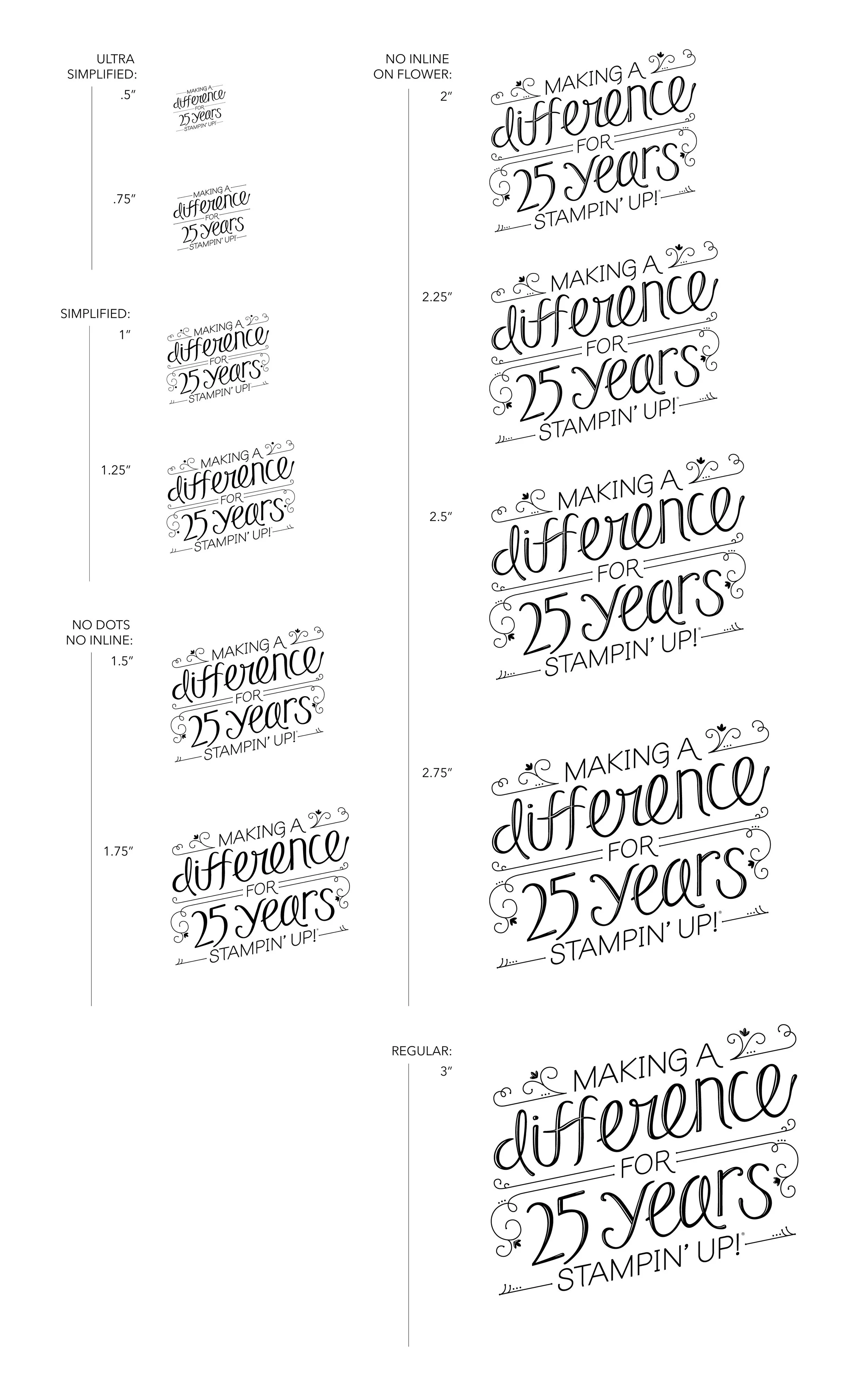 This layout displays a flexible annual corporate theme brand program I designed. This mark also served as the visual brand for the Stampin’ Up! Leadership event at the beginning of the year. One of the more demanding requirements for the mark was to accommodate translations of the theme name in a uniform mark, to better serve the voices of our diverse markets.